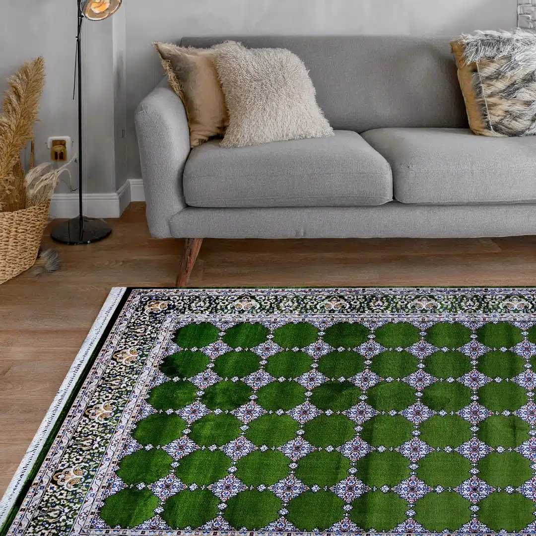 Infuse your space with richness and tradition using the Bukhara Green Elegance Rug. Its deep emerald green base is framed by an ornate floral border and adorned with symmetrical medallion motifs in ivory, beige and navy. The bold yet classic palette brings warmth and definition to both modern and traditional interiors.