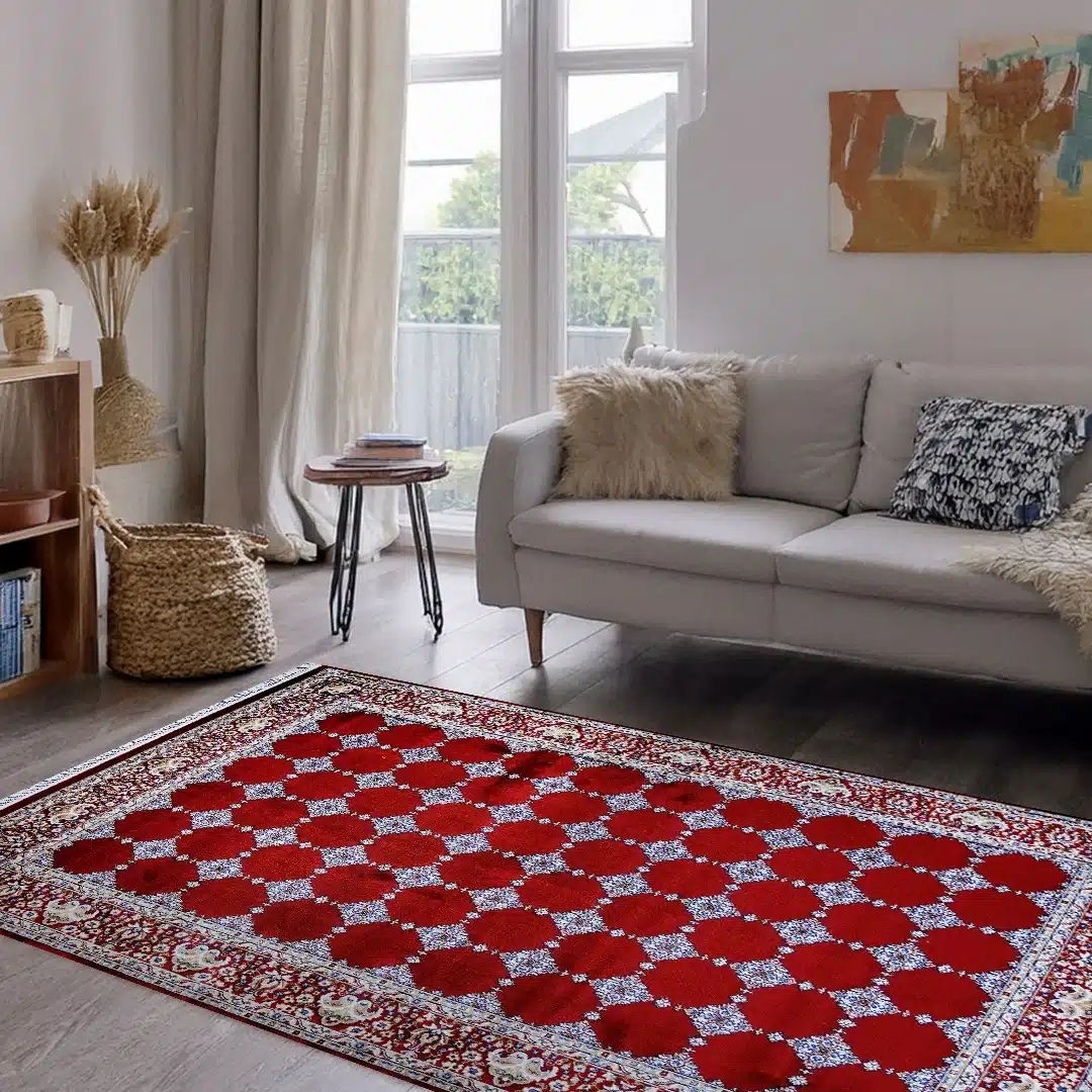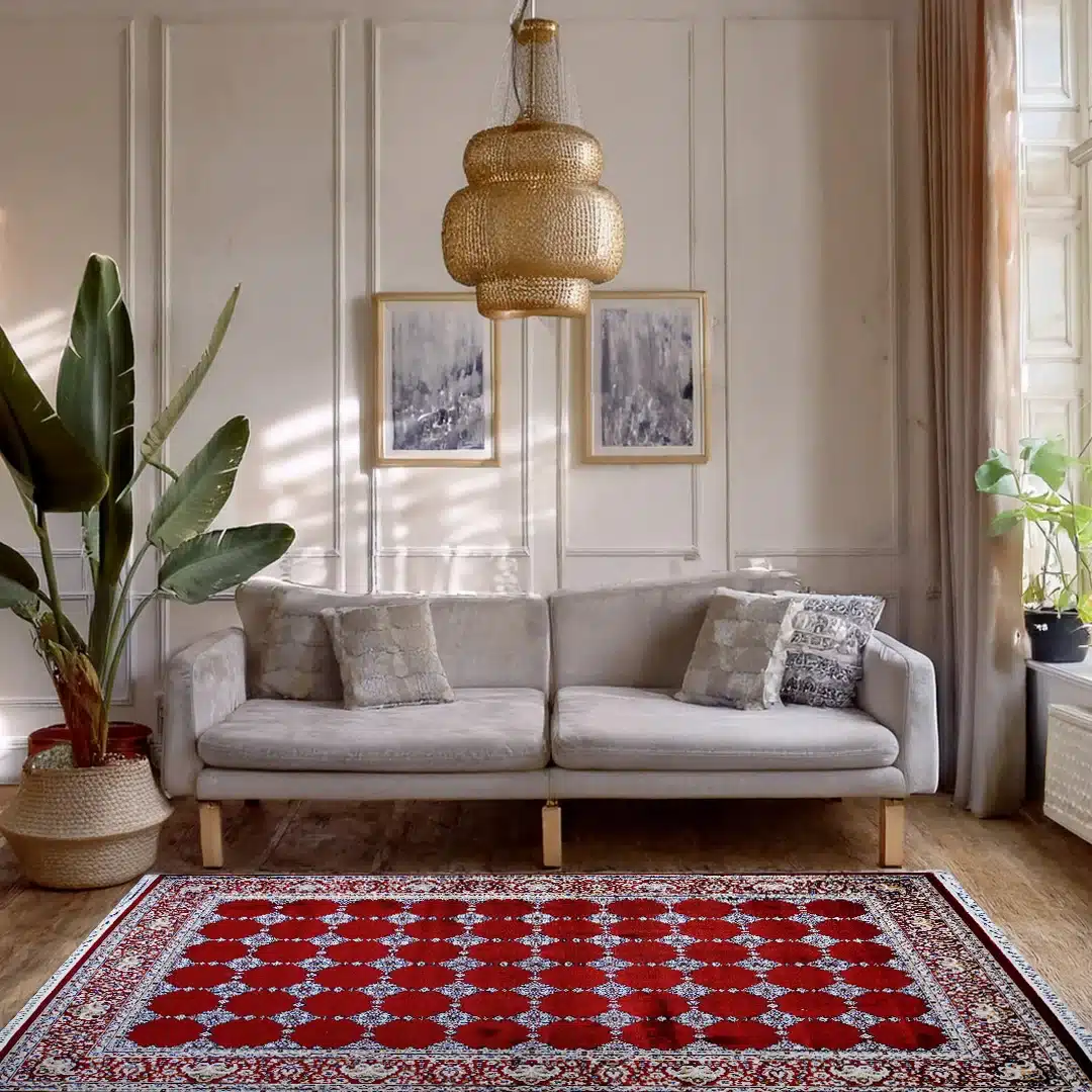 Crafted from soft, resilient fibres, the Bukhara Red is built to offer both comfort and everyday durability.