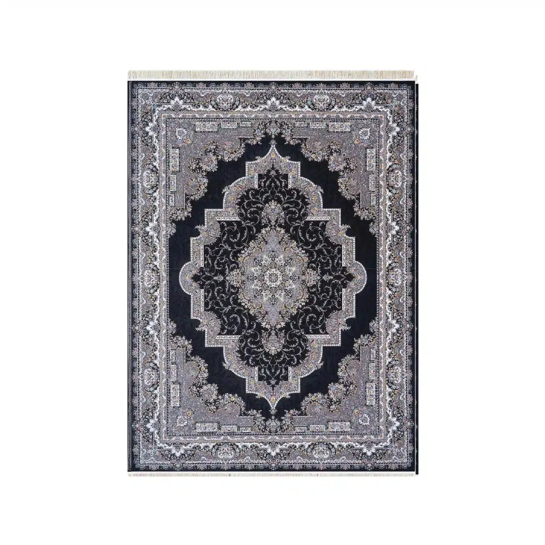 Make a confident statement with the Amatis Maneii Navy Blue Rug. A deep navy ground showcases a stepped medallion with scrolling florals, framed by layered borders in grey and ivory with subtle pastel highlights. The rich palette adds depth and structure while remaining easy to style with modern or classic décor.