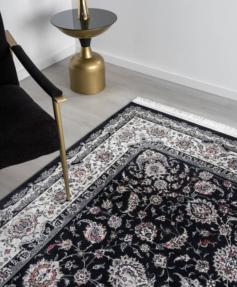 Add a touch of elegance and sophistication to your space with the Minyatur Classic Persian Navy Traditional Rug. Crafted from 100% viscose, this rug boasts a silky sheen and ultra-soft texture, making it a luxurious addition to any home.