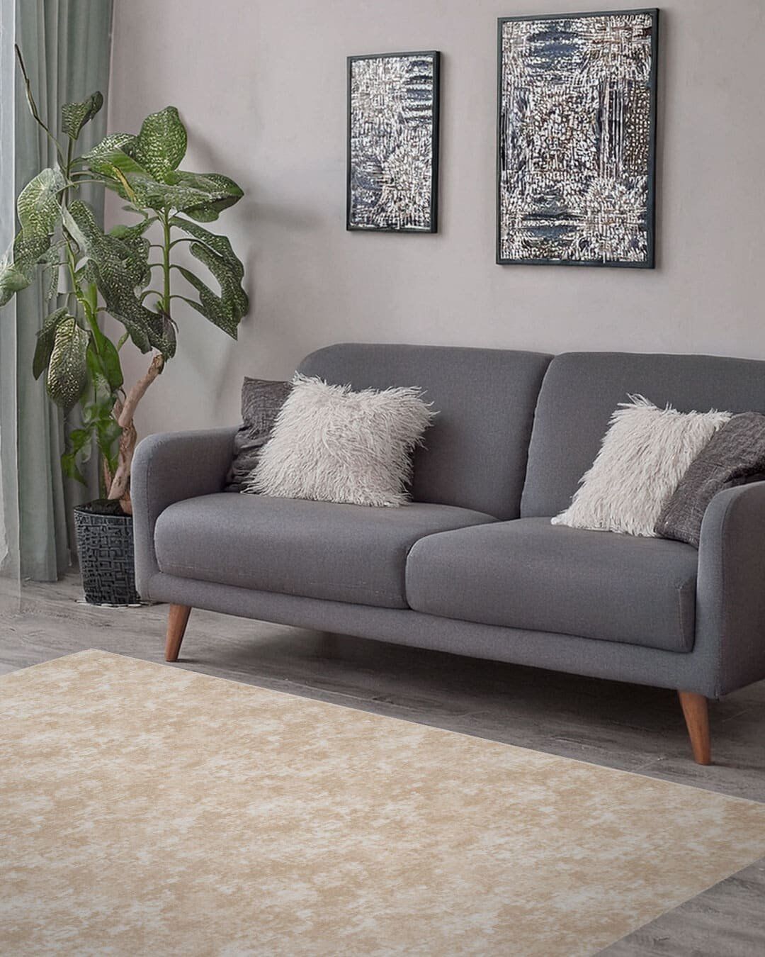 Refresh your space with the PARANTEZ-3138-MINK. This neutral mink beige rug features a soft clouded texture that blends effortlessly with modern, minimalist, and cozy classic interiors. Its velvety low pile feels luxe underfoot while the subtle tonal pattern hides everyday footprints and pet hair, making it a practical choice for busy homes.